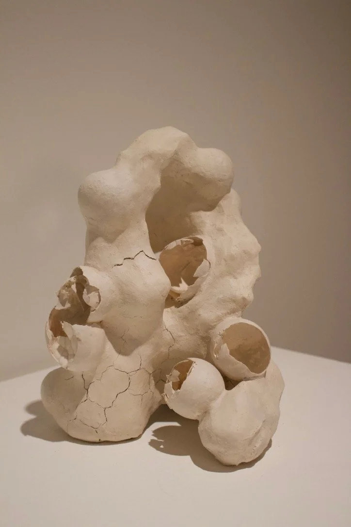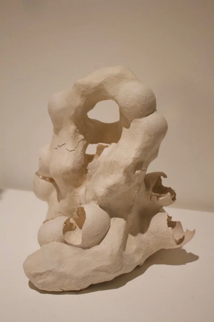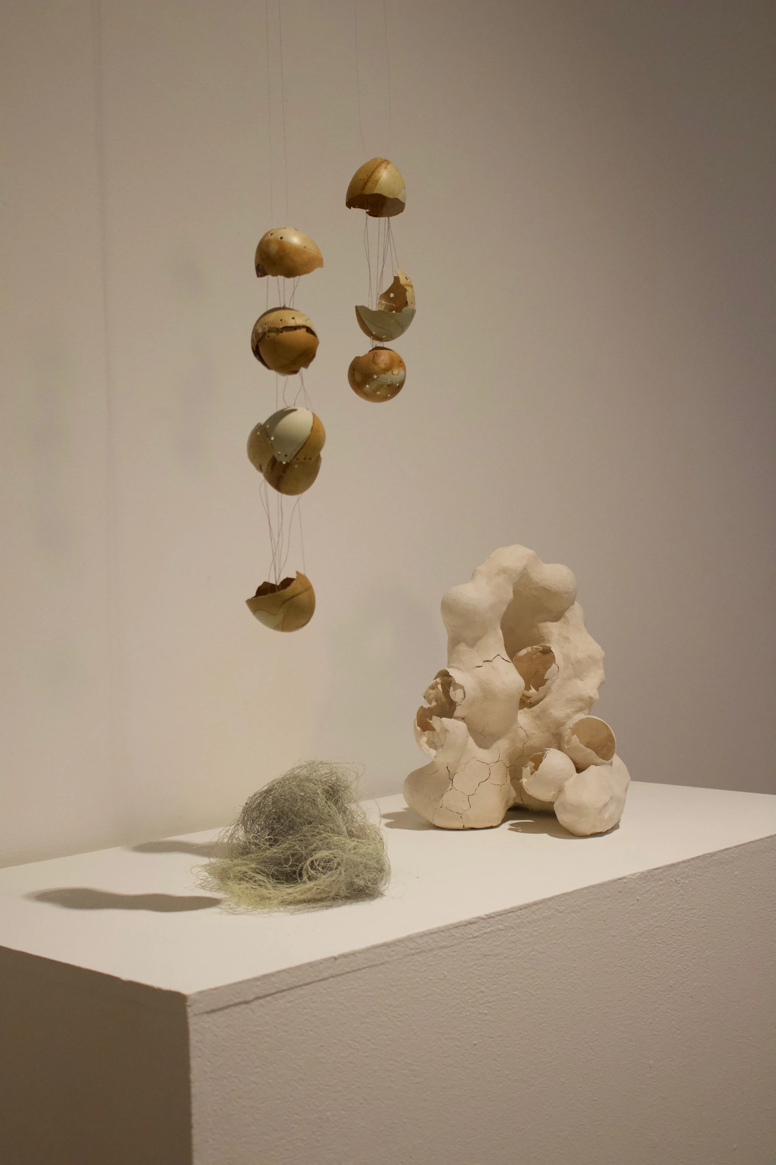 egg study (no. 1), 2024. Eggshells, unfired clay, chicken wire, aluminum egg study (no. 1, 2), crane, 2024 Slide 1 Slide 1 (current slide) Slide 2 Slide 2 (current slide) Slide 3 Slide 3 (current slide) Slide 4 Slide 4 (current slide) Slide 5 Slide 5 (current slide)